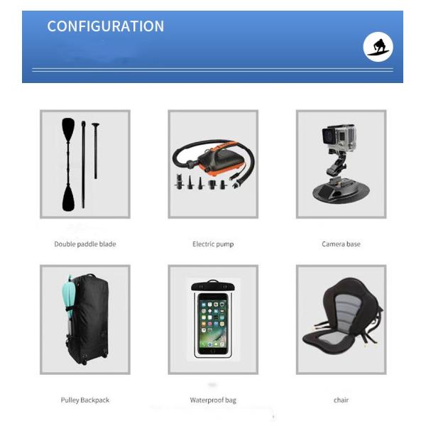 2) The surfboard material is 15cm drop stitch +PVC+EVA.
